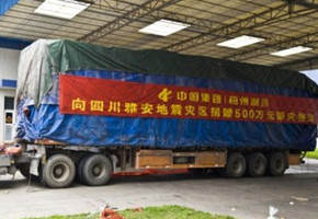 四川省蘆山“4?20”7.0級(jí)強(qiáng)烈地震發(fā)生當(dāng)天,中恒集團(tuán)迅速行動(dòng)起來(lái),向?yàn)?zāi)區(qū)捐贈(zèng)了價(jià)值500萬(wàn)元的抗震救災(zāi)藥品。據(jù)中恒集團(tuán)相關(guān)負(fù)責(zé)人介紹,出差在外的許淑清董事長(zhǎng)在獲知雅安發(fā)生地震的第一時(shí)間,就安排向?yàn)?zāi)區(qū)捐藥一事。她說(shuō),雅安災(zāi)區(qū)人民此時(shí)最急需的就是藥品、食品等救災(zāi)物資,必須在21日前落實(shí)好所捐藥品,并完成裝車趕運(yùn)雅安。后經(jīng)過(guò)工人們?nèi)σ愿暗呐Γ?1日裝滿救災(zāi)藥品的大卡車正式開(kāi)離中恒集團(tuán)生產(chǎn)廠區(qū)直奔雅安!詳細(xì)】