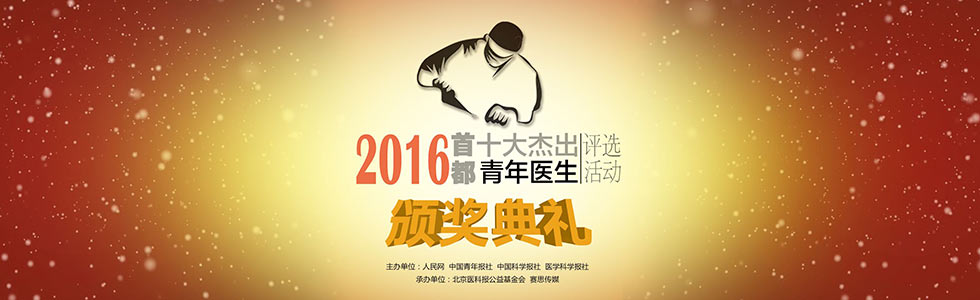 9月13日,“2016首都十大杰出青年醫(yī)生評選活動(dòng)”頒獎(jiǎng)典禮在人民網(wǎng)舉行現(xiàn)場直播。10位“首都十大杰出青年醫(yī)生”獲獎(jiǎng)?wù)摺?0位提名獎(jiǎng)獲得者以及41位首都優(yōu)秀青年醫(yī)生名單揭曉,同時(shí)公布了獲得本次活動(dòng)優(yōu)秀組織獎(jiǎng)的10家醫(yī)院名單。醫(yī)衛(wèi)領(lǐng)域院士、院長、行業(yè)協(xié)會(huì)負(fù)責(zé)人等為獲獎(jiǎng)?wù)吆蜋C(jī)構(gòu)頒獎(jiǎng)。本次活動(dòng)由人民網(wǎng)、中國青年報(bào)社、中國科學(xué)報(bào)社、醫(yī)學(xué)科學(xué)報(bào)社共同主辦。