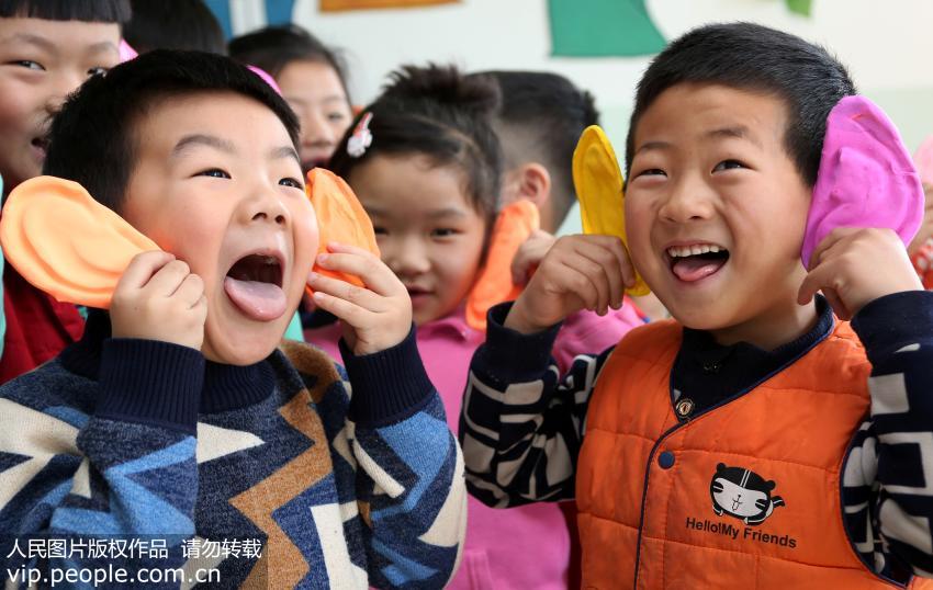點(diǎn)擊下載本組圖片 幼兒園的小朋友們在展示自己用橡皮泥制作的彩色“耳朵”。(吉喆、張立超/人民圖片【詳細(xì)】