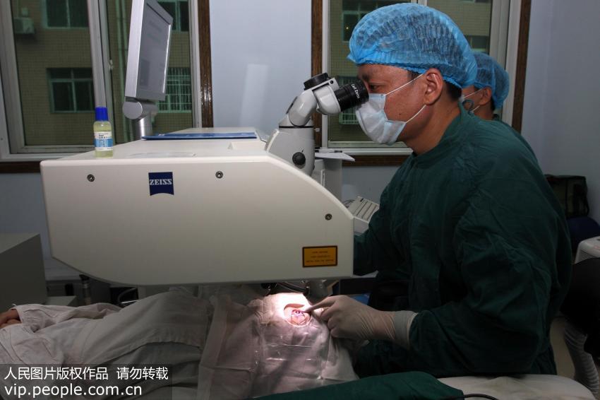 點(diǎn)擊下載本組圖片 一名近視眼患者在湖南省婁底眼科醫(yī)院進(jìn)行手術(shù)。(郭國權(quán)/人民圖片) (聲明:【詳細(xì)】