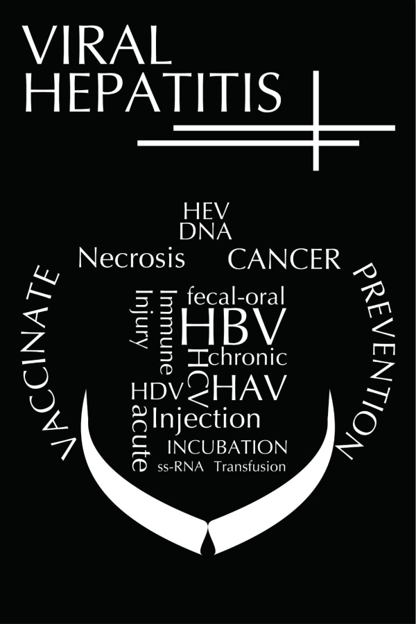 該作品以與病毒性肝炎相關(guān)的關(guān)鍵詞為主要內(nèi)容,以英文字母的形式排列,最終形成預(yù)防的圖案,黑白醒目,震懾【詳細(xì)】