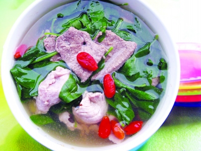豬肝菠菜湯(圖片來源:揚子晚報) 老北京鹵煮、韭菜豬肝、羊雜湯等這些由動物肝臟做成的美食不勝枚舉【詳細】