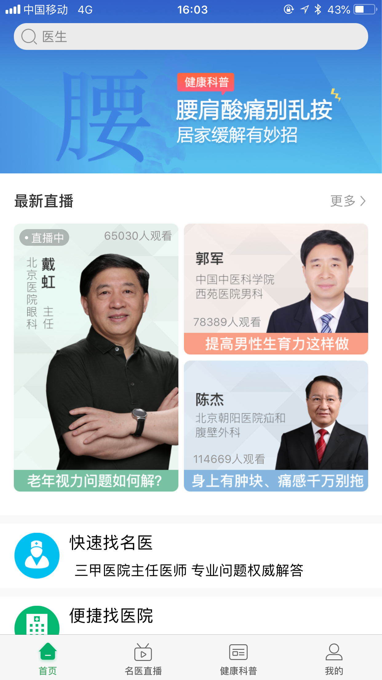人民好醫(yī)生是人民日報社人民網(wǎng)傾力打造的權威名醫(yī)科普直播互動平臺。依托于全國三甲醫(yī)院專家資源,實現(xiàn)"大專家講科普"、"名醫(yī)直播互動"、"醫(yī)患互動康友圈"等功能,同時提供全方位全周期的健康管理服務。