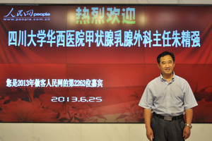 朱精強(qiáng),主任醫(yī)師、教授,四川大學(xué)華西醫(yī)院甲狀腺乳腺外科主任、碩士生導(dǎo)師。于1984年7月畢業(yè)于華西醫(yī)科大學(xué)醫(yī)學(xué)系。2009年獲第6屆中國醫(yī)師獎。對甲狀腺及乳腺疾病的診治具有豐富經(jīng)驗,尤其擅長累及血管神經(jīng)的晚期甲狀腺癌的手術(shù)治療,對預(yù)防喉返神經(jīng)及甲狀旁腺損傷具有豐富的經(jīng)驗。【