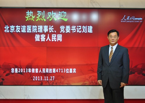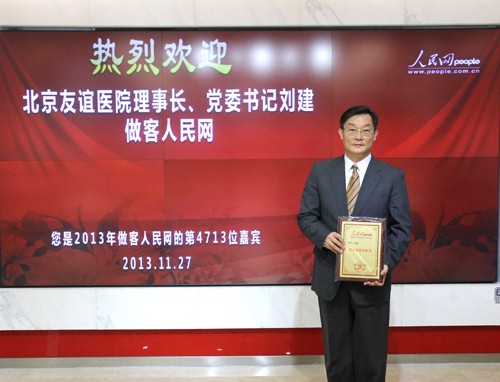 劉建,首都醫(yī)科大學(xué)附屬北京友誼醫(yī)院理事長、黨委書記、主任醫(yī)師、教授。目前擔(dān)任北京醫(yī)院協(xié)會副會長、中國醫(yī)院協(xié)會常務(wù)理事。2012年獲全國醫(yī)改十大新聞人物、中國優(yōu)秀醫(yī)院院長、最具領(lǐng)導(dǎo)力醫(yī)院院長稱號。