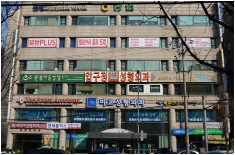 圖為韓國(guó)整形醫(yī)院聚集區(qū)(人民網(wǎng)張悅 攝)