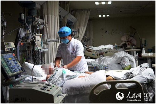 圖為南昌市第三醫(yī)院ICU重癥監(jiān)護(hù)室男護(hù)士周強