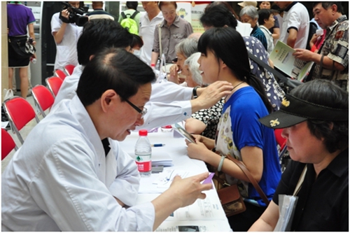 (義診現(xiàn)場(chǎng)專家為患者進(jìn)行解答、觸診 人民網(wǎng)李軼群拍攝)