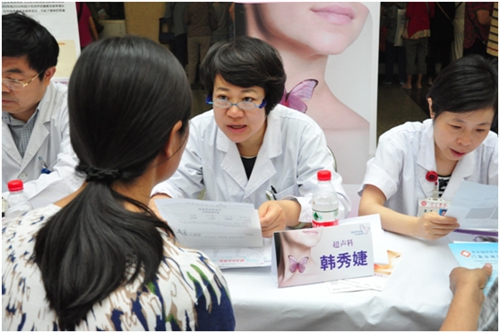 (超聲科主任醫(yī)師韓秀婕為患者解釋病情 人民網(wǎng)李軼群拍攝)