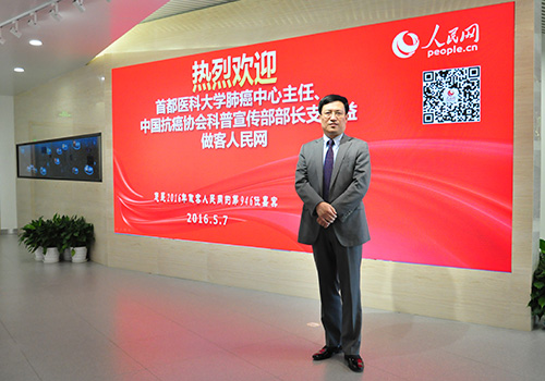 人民網(wǎng)北京5月10日電 (王亞微)據(jù)最新數(shù)據(jù)統(tǒng)計,2015年中國約有429.2萬癌癥新發(fā)病例,而其中肺癌占比17.1%,死亡率高達21.1%,已成為威脅國人生命健康的“頭號殺手”。不僅是在中國,即使是在美國,對癌癥未知領域的探索與研究也仍是醫(yī)學界的重中之重。肺癌治療的主要方法有哪些?中國和美國的免疫療法又有什么不同?美國安德森醫(yī)院放療中心主任張玉蛟、首都醫(yī)科大學肺癌中心主任支修益、盛諾一家醫(yī)學總監(jiān)張霞做客由人民網(wǎng)健康頻道與健康時報聯(lián)合舉辦的中美醫(yī)療專家對話會時,就“肺癌的提前預防與治療”這一話題與廣大網(wǎng)友進行了交流。