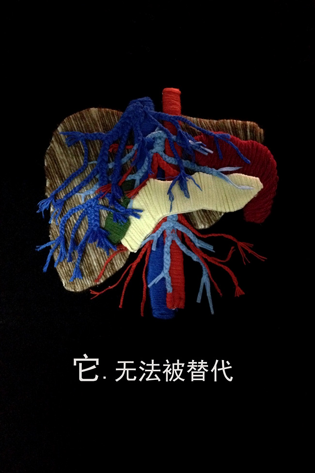 該作品利用毛線、不織布等材料做出肝臟的形狀,意在告訴讀者:肝臟的造型雖然可以被模仿被復(fù)制,但是我們的肝臟是唯一且無法被替代的,呼吁大家加強(qiáng)對(duì)肝炎的防控。(圖文/大連醫(yī)科大學(xué)姜雨思 沈陽理工大學(xué)蘇治文)