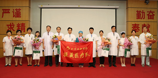 (圖為:北京協和醫(yī)院院領導與第二批援藏醫(yī)療隊員合影 攝影 王鵬飛)