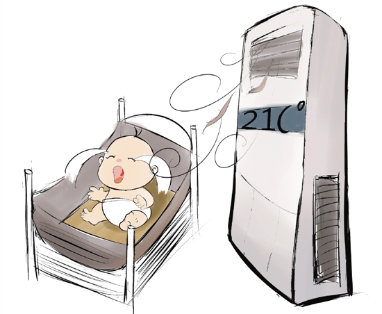 前天下午大約1點(diǎn),一個(gè)媽媽急匆匆地抱著孩子來醫(yī)院,說是孩子嘴巴歪了。醫(yī)生一問情況,發(fā)現(xiàn)就是空調(diào)吹出來的毛病。午休前,媽媽和寶寶在客廳吃飯,當(dāng)時(shí)沒開電扇,也沒開空調(diào)。想想寶寶要午睡,媽媽就提早在嬰兒房開了空調(diào),為了讓溫度降下來,調(diào)到了21℃。誰知道,午睡一小時(shí)后,她就聽到嬰兒房傳來了寶寶的哭聲。