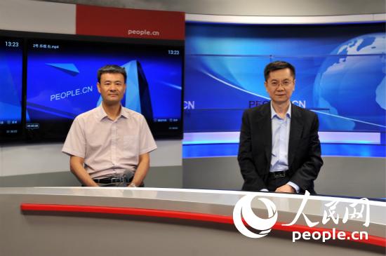 中國(guó)疾病預(yù)防控制中心免疫規(guī)劃中心副主任崔富強(qiáng)(左)、首都醫(yī)科大學(xué)附屬北京友誼醫(yī)院肝病中心主任賈繼東(右)做客人民網(wǎng)。(人民網(wǎng)記者韓淑賢 攝)