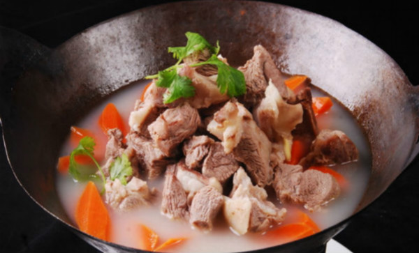 胡蘿卜與羊肉洗凈瀝干并切塊備用,將羊肉放入開水汆燙,撈起瀝干后放入油鍋,大火翻炒至肉色變白,放入水及其他調(diào)味料。先用大火將水燒開,后改小火燉一個(gè)小時(shí),再放入胡蘿卜繼續(xù)燉,最后放入香油、鹽等調(diào)味即可。