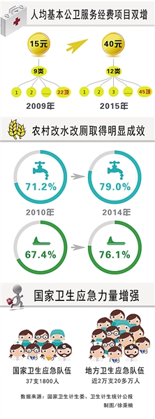 SARS后的中國(guó)公共衛(wèi)生,進(jìn)入了發(fā)展的快車(chē)道。2009年,我國(guó)啟動(dòng)國(guó)家基本公共衛(wèi)生服務(wù)項(xiàng)目,覆蓋人群逐步增多,服務(wù)項(xiàng)目不斷擴(kuò)展,迄今共包含11類(lèi)內(nèi)容。國(guó)家規(guī)定的人均基本公共衛(wèi)生服務(wù)經(jīng)費(fèi)標(biāo)準(zhǔn),也由最初的每人每年15元增至2015年的每人每年40元。與此同時(shí),疾控機(jī)構(gòu)與醫(yī)療機(jī)構(gòu)、農(nóng)村和社區(qū)衛(wèi)生服務(wù)機(jī)構(gòu)傳染病聯(lián)防聯(lián)控機(jī)制初步建立。
