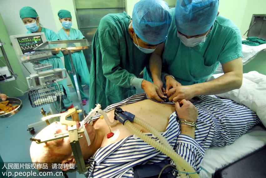 資料圖:2007年,武警醫(yī)院腦外科立體定向中心為一名病人進(jìn)行“微創(chuàng)開(kāi)顱”手術(shù)。(楊婀娜、呂路陽(yáng)/人民圖片)