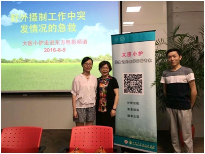 為了普及急救知識(shí),提高東方電影頻道戶外工作人員的急救意識(shí)與現(xiàn)場(chǎng)急救能力。2016年8月9日,由上海市第六人民醫(yī)院急診醫(yī)學(xué)科魏薇萍護(hù)士長(zhǎng)率領(lǐng),急診科護(hù)士譚耘和紀(jì)曉康來(lái)到東方電影頻道,為該部門的工作人員進(jìn)行了野外攝制工作中突發(fā)情況的急救知識(shí)培訓(xùn)。