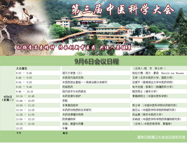 第三屆中醫(yī)科學(xué)大會日程表(9月6日)