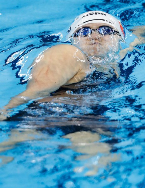 傅園慧在里約奧運會女子100米仰泳決賽中。 新華社記者王麗莉攝