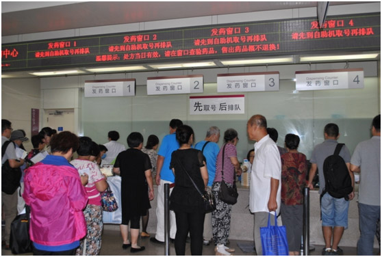 圖為朝陽醫(yī)院發(fā)藥窗口