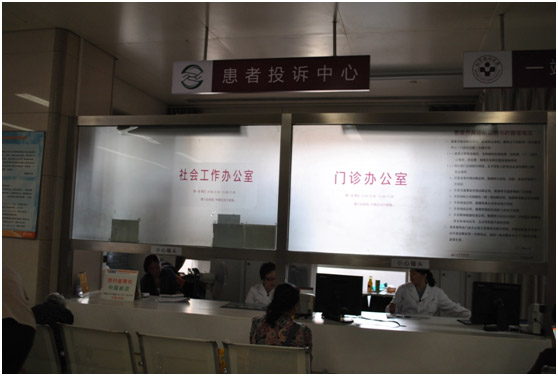 門診大廳設(shè)有患者投訴中心,位置專門選在藥房旁邊。取藥是整個就診流程的最后一步,當患者離開醫(yī)院時,會自然而然地經(jīng)過這里,心里有什么委屈,不滿,可以坐下來說一說!霸诖髲d里開設(shè)投訴中心后,雖然接到的投訴量增加了,但是也讓醫(yī)院一方更加清楚患者的想法,以患者的訴求來改進服務(wù),而不是以醫(yī)院的思維來改進!眳羌忆h說。