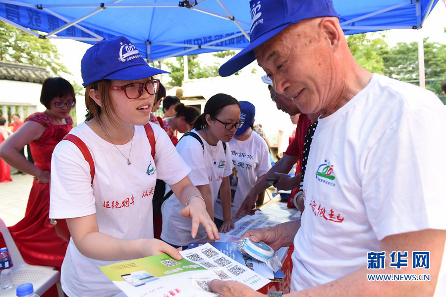 2016年5月31日,福建省疾病預(yù)防控制中心工作人員為市民講解控?zé)熤R (圖片來源:林善傳/新華網(wǎng))