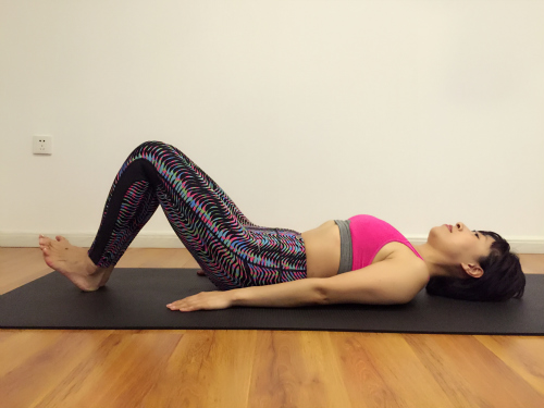 側(cè)姿支撐可以激活肩部、下肢、軀干肌群。方法:身體呈一條直線側(cè)臥于墊子上,右手放于肩關(guān)節(jié)下方,右肘彎曲90度,推起軀干,雙腳并攏伸直,保持10-15秒后,回到起始姿勢,換至對側(cè)進行練習(xí)。注意推起軀干時應(yīng)收緊腹部、收下頜、伸髖,使軀干呈一條直線;注意身體、軀干、支撐手臂及雙腿保持直線。