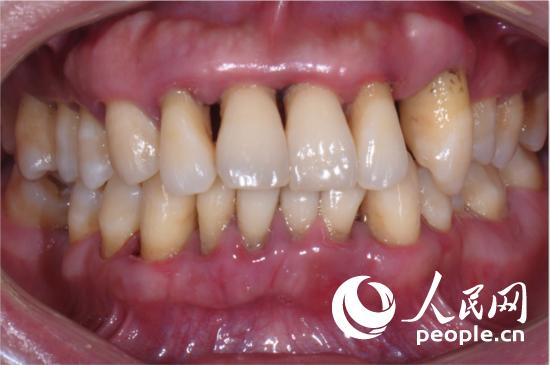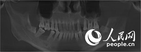 牙周炎患者的口腔內部照片和x光片(人民網(wǎng)記者張希 攝)