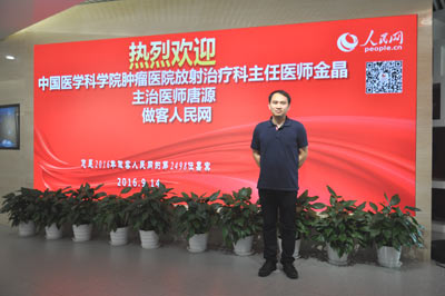 圖為中國醫(yī)學(xué)科學(xué)院腫瘤醫(yī)院放射治療科主治醫(yī)師唐源做客人民網(wǎng)