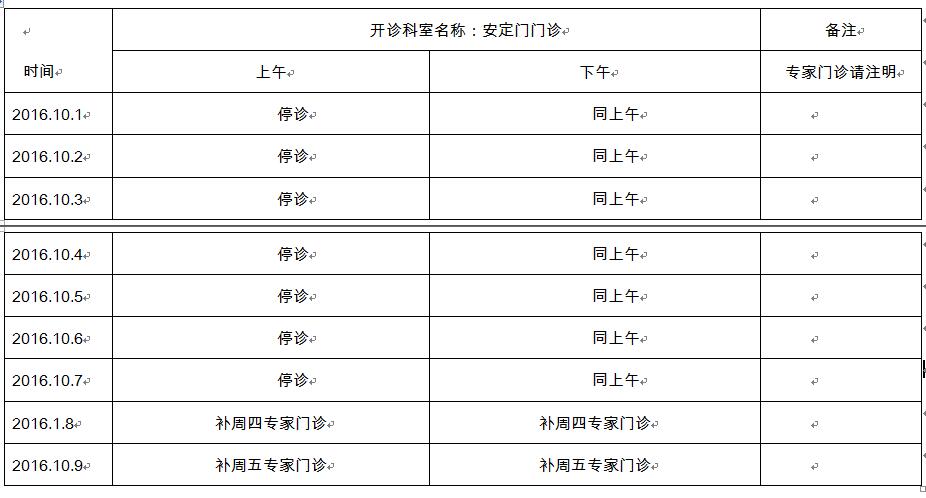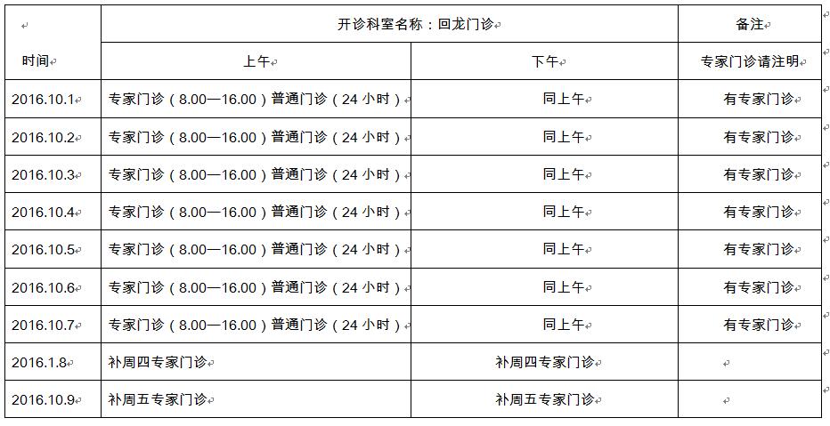 北京回龍觀醫(yī)院2016年“國慶節(jié)”期間門診安排
