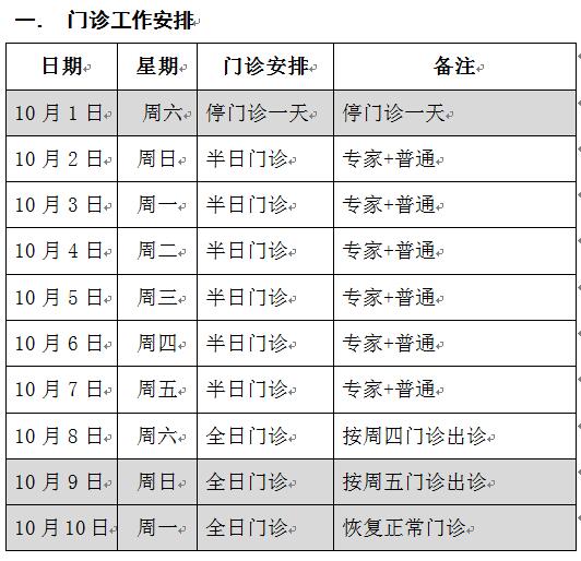 (一)“國(guó)慶節(jié)放假期間”門(mén)診時(shí)間