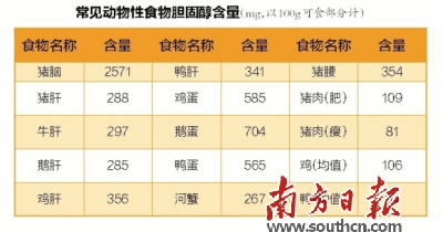 常見動(dòng)物性食物膽固醇含量(圖片來源:南方日?qǐng)?bào))