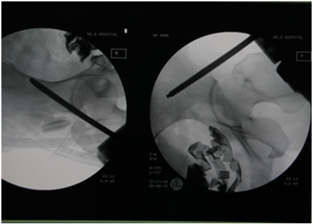 術(shù)中的透視可以看到患者盆腔內(nèi)留了大量紗布(圖片來源:芮碧宇/攝)
