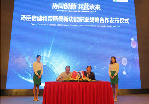 湯臣倍健和帝斯曼新功能研發(fā)戰(zhàn)略合作發(fā)布儀式現(xiàn)場