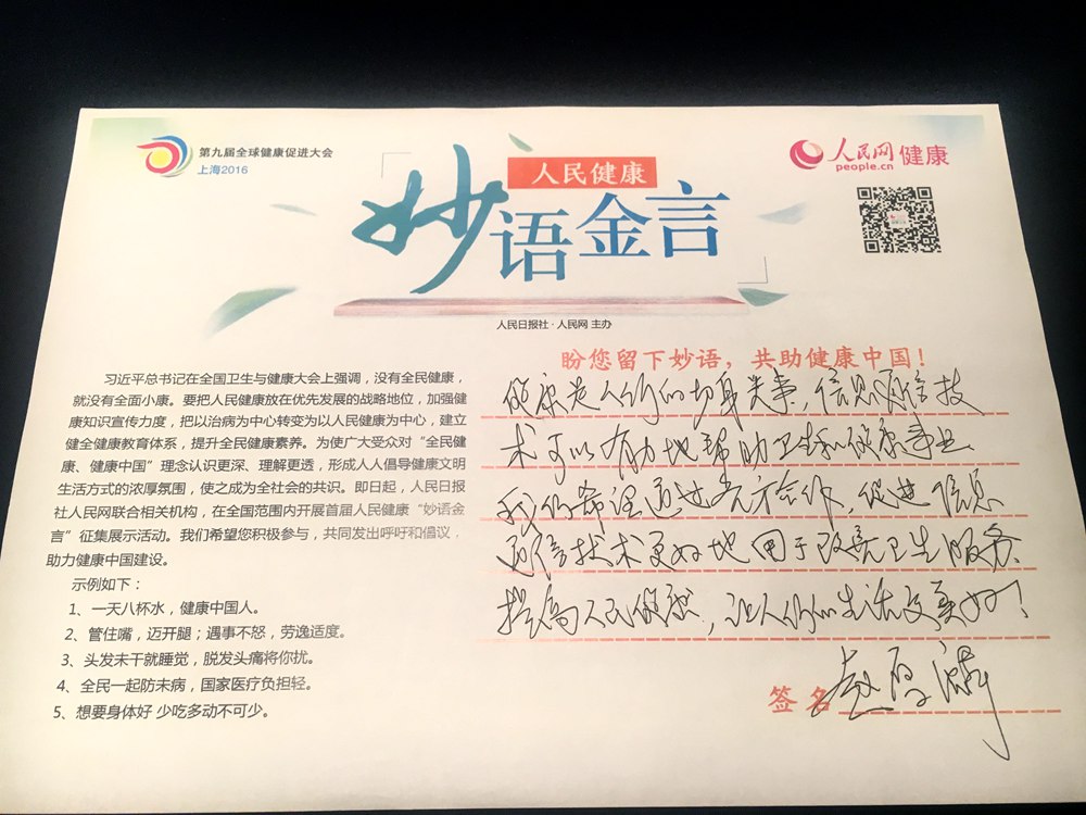 國際電信聯(lián)盟秘書長趙厚麟?yún)⑴c人民健康妙語金言征集活動(dòng)