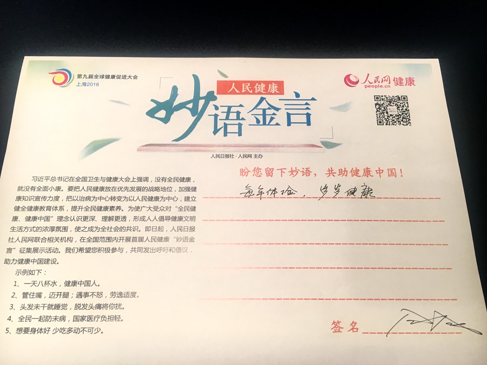 美年大健康董事長俞熔參與人民健康妙語金言征集活動