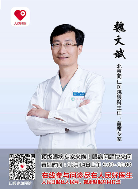 12月14日(周三)9:00~10:00,由人民日報社人民網(wǎng)、健康時報聯(lián)手打造的“人民好醫(yī)生”客戶端將邀請北京同仁醫(yī)院眼科主任、首席專家魏文斌教授進(jìn)行視頻、圖文直播,在線解答各種眼病問題。
