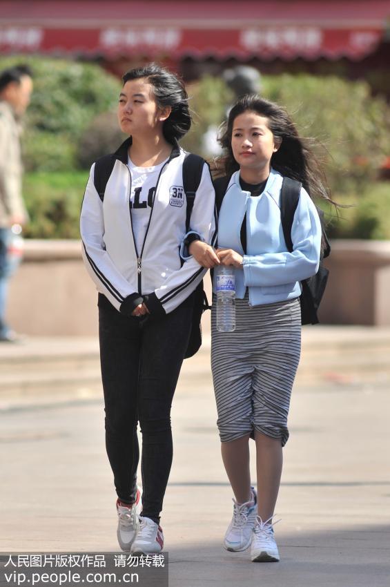 人們身著秋裝出行,現(xiàn)時裝版美麗“凍”人畫面。(王海濱/人民圖片)