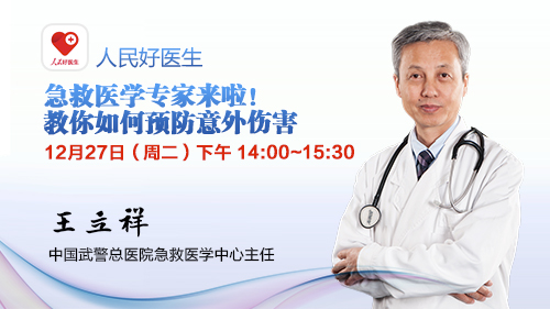 12月27日(周二)14:00,由人民日報社人民網(wǎng)、健康時報聯(lián)手打造的“人民好醫(yī)生”客戶端將邀請中國武警總醫(yī)院急救醫(yī)學(xué)中心主任、中華醫(yī)學(xué)會科學(xué)普及分會主任委員王立祥教授進行視頻、圖文直播,在線解如何防止生活中意外傷害和各種疑難急危重病急救的各項問題。