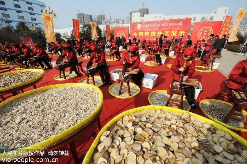 安徽亳州:百名藥工展示中藥傳統(tǒng)技藝(張延林/人民圖片)