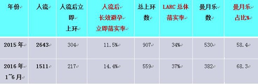 7. 長效避孕方法落實(shí)比率:長效避孕(環(huán))立即落實(shí)率11%,1年續(xù)用率96.5%