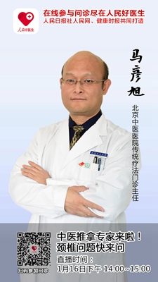 1月16日(周一)14:00-15:00,由人民日報社人民網(wǎng)、健康時報聯(lián)手打造的“人民好醫(yī)生”客戶端將邀請首都醫(yī)科大學(xué)附屬北京中醫(yī)醫(yī)院骨傷科主任醫(yī)師馬彥旭進(jìn)行視頻、圖文直播,在線解答關(guān)于“人體的黃金樞紐——頸椎”的相關(guān)問題,期待您的參與。