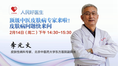 2月14日(周二)14:30-15:30,由人民日報社人民網(wǎng)、健康時報聯(lián)手打造的“人民好醫(yī)生”客戶端將邀請北京中醫(yī)藥大學(xué)東方醫(yī)院副院長李元文教授進行視頻、圖文直播,在線解答關(guān)于美容養(yǎng)顏、改善皮膚狀態(tài),治療皮膚疾病的相關(guān)問題,期待您的參與。