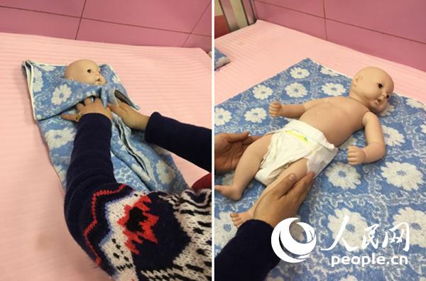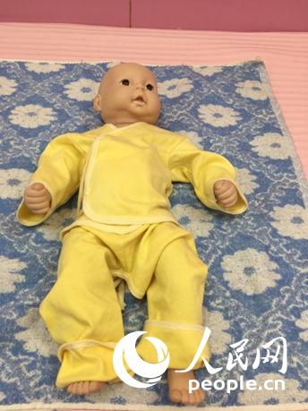 8、給嬰兒穿上預(yù)先準備好的衣服。(趙穎泉)