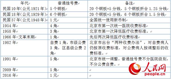 近現代北京地區(qū)掛號費數額比較(高黎明/人民網)