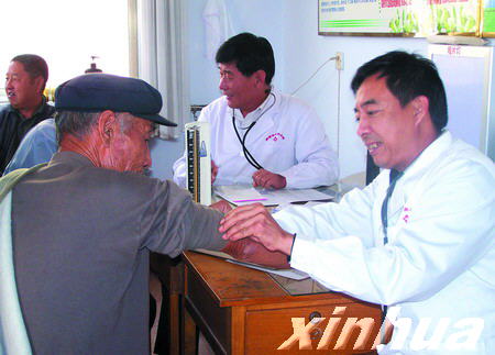 山東省高密市立醫(yī)院醫(yī)務人員為部分社區(qū)的老年人免費體檢。(萬前 欽凱/新華網(wǎng))