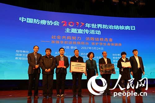 人民網(wǎng)北京3月27日電 3月24日是第22個“世界防治結(jié)核病日”,由國家衛(wèi)生計生委疾控局、國家教育部體衛(wèi)藝司指導(dǎo),中國防癆協(xié)會主辦,山東省衛(wèi)生計生委、山東省教育廳、泰安市人民政府、山東省結(jié)核病防治中心、山東防癆協(xié)會、泰山醫(yī)學(xué)院等多家單位聯(lián)合承辦的以開展校園結(jié)核病防治為主題的大型“世界防治結(jié)核病日”活動在山東省泰安市成功舉辦,近千人參加了本次活動。