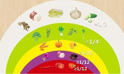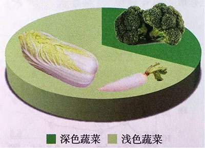 并且首次提出了,深色蔬菜應占蔬菜總量的1/2以上,在深色蔬菜當中,深綠色蔬菜至少要占深色蔬菜總量的1/2以上。
