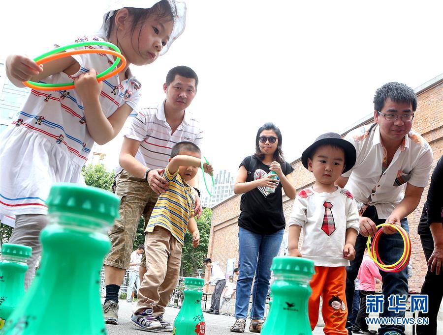 父親和孩子在親自游戲中互動。(陳飛/新華社)